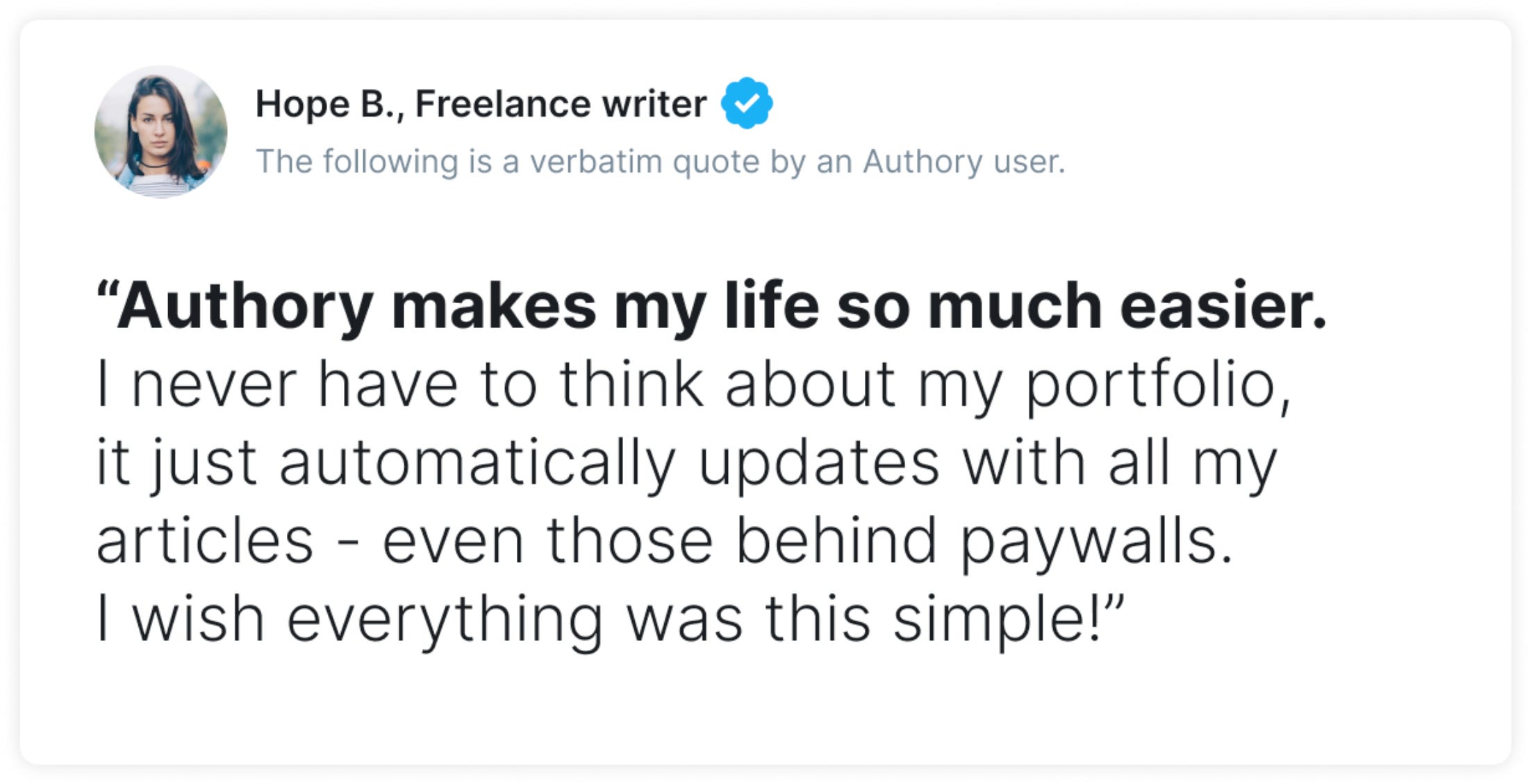 Authory automates your portfolio, pulling in your latest articles as soon as they’re published. And it backs them up, too.